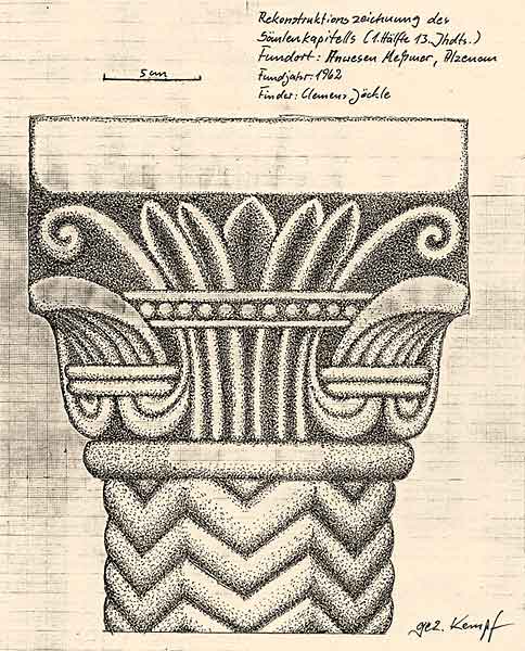 die Kirche von Wilmundsheim erbaute. Ein romanisches Säulenkapitell aus dem